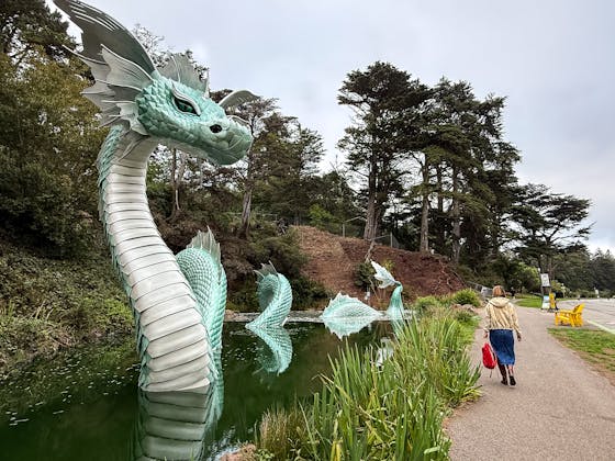 Dubbed the Golden Mile, this car-free stretch of road in Golden Gate Park features rotating art installations of murals, sculptures, and abundant bright yellow Adirondack chairs for kicking back to relax. See Naga, the recent new addition here, an impressive sea serpent art installation at Golden Gate Park's Rainbow