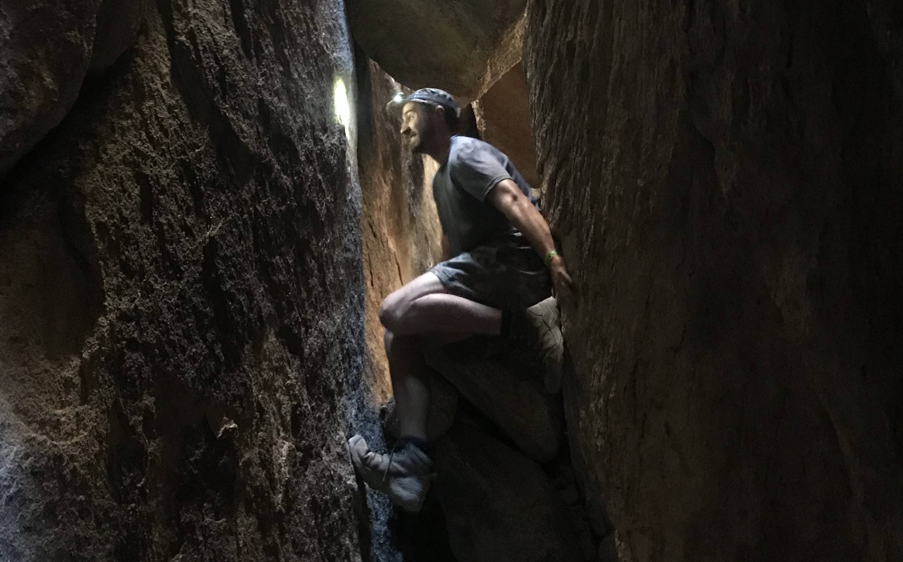 When you enter Joshua Tree’s Chasm of Doom, your fate is sealed. Your life becomes an experience of mystery, steep climbs, steeper drops, chimneying, and death-defying squeezes. Wh