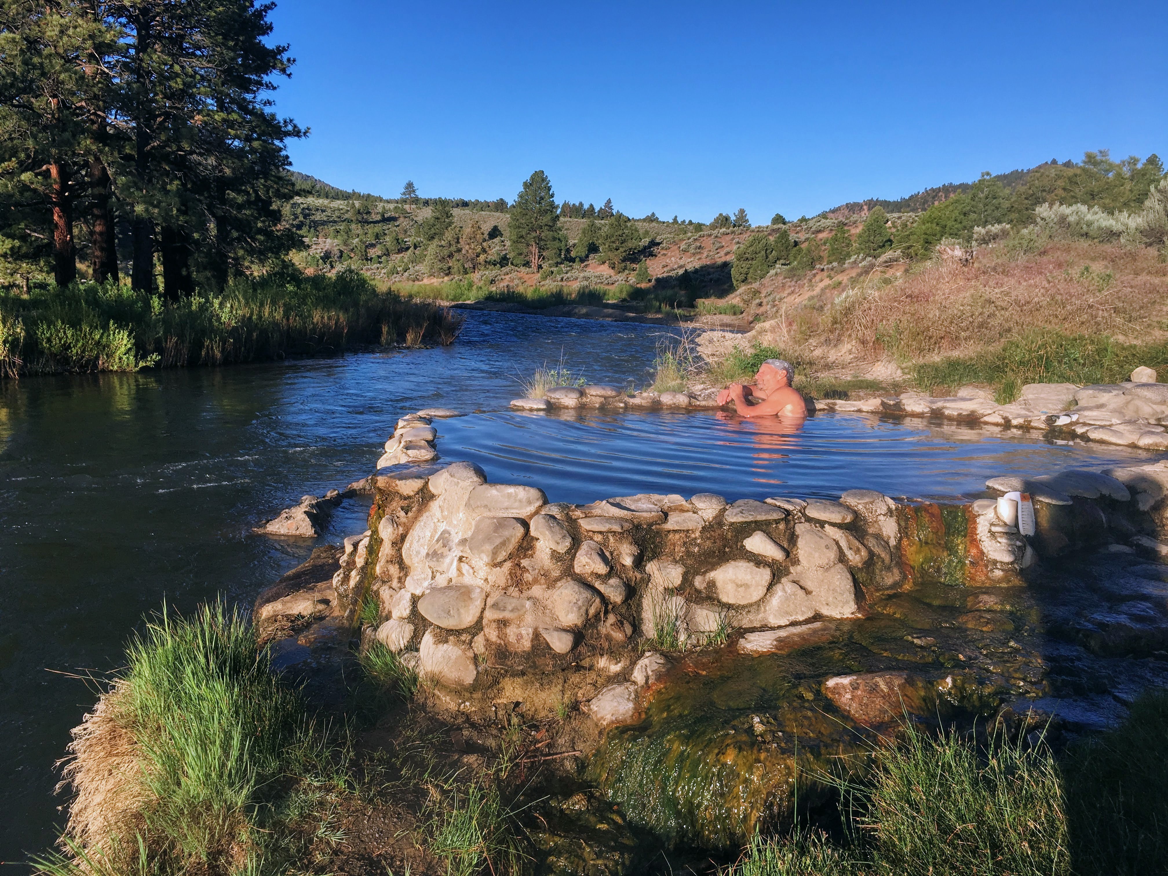 Along the banks of the East Fork Carson River, brushing the California–Nevada border, sits a series of hot spring pools surrounded by high desert. The springs have for years been a
