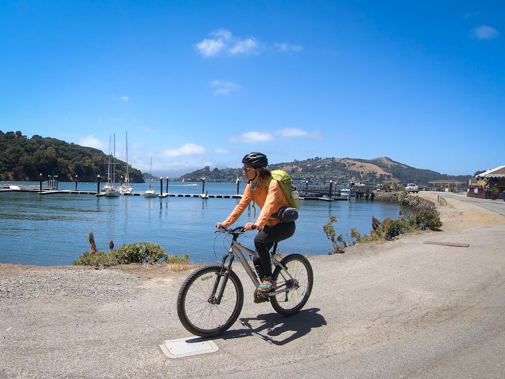 A bicycle is a fantastic way to take in the 360-degree panoramas you get on Angel Island. The straightforward Perimeter Road is a car-free route that circumnavigates the island. Stop along the way at a hidden beach.