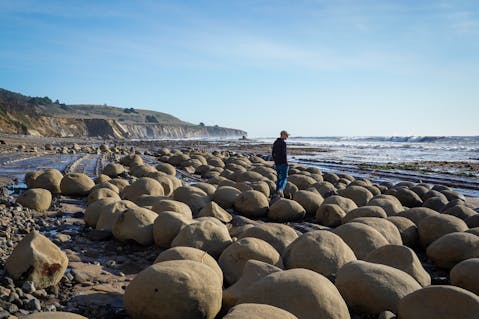 Hidden along the Mendocino Coast, Bowling Ball Beach lives up to its name, and then some! Giant smoothly rounded boulders (some 12 feet across) are scattered along the beach, and it’s a phenomenal spectacle.