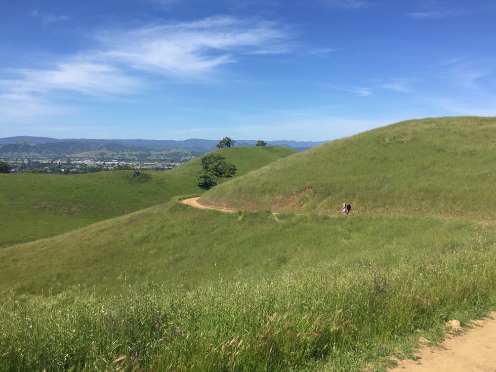 Rolling green hills punctuated by carpets buttercups and poppies: Coyote Lake Harvey Bear Ranch County Park in Gilroy seems positively sun-kissed in spring. It’s the best time of year to hike here, before summer heat sets in. Go on a 4.2-mile loop hike framed by the towering Sant