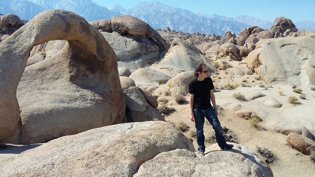 Hiking among rare formations at Alabama Hills in Owens Valley California