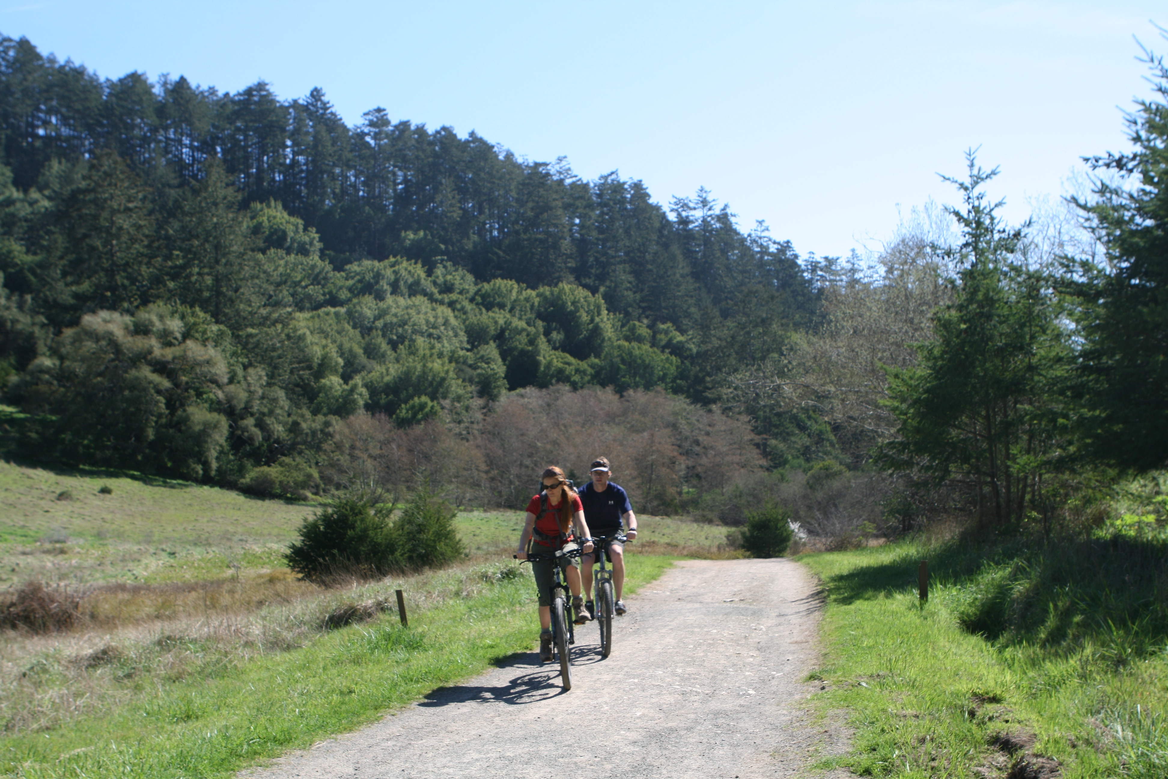 The popular Bear Valley Trail in Point Reyes National Seashore is one of the best places to enjoy a good bike-and-hike trail, with a peaceful ride and ramble that leads to beautiful coastal vistas. Get a jumpstart on hikers by biking the first 3 mellow miles along the creekside f