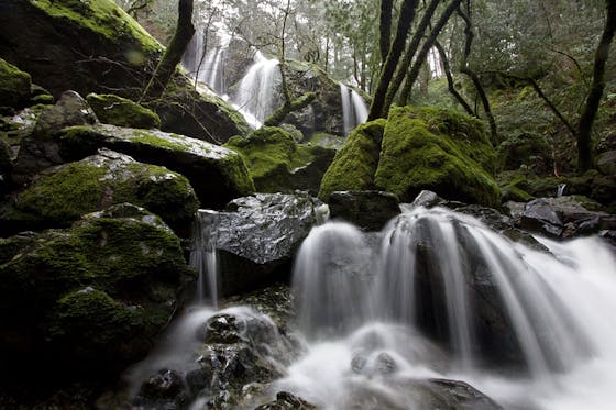 In winter after heavy rains, the north flank of Mount Tam glows with flows. The nearly mile-long series of waterfalls—Cataract Falls—transforms into a supercharged spectacle. Starting at Alpine Dam, a 1.6 mile (one-way) narrow trails threads through redwoods and ferns along Cataract Creek.