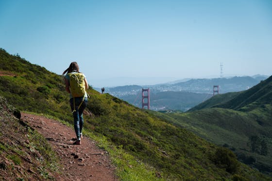 ![Woman hiking the Coastal Trail in the Marin Headlands]()