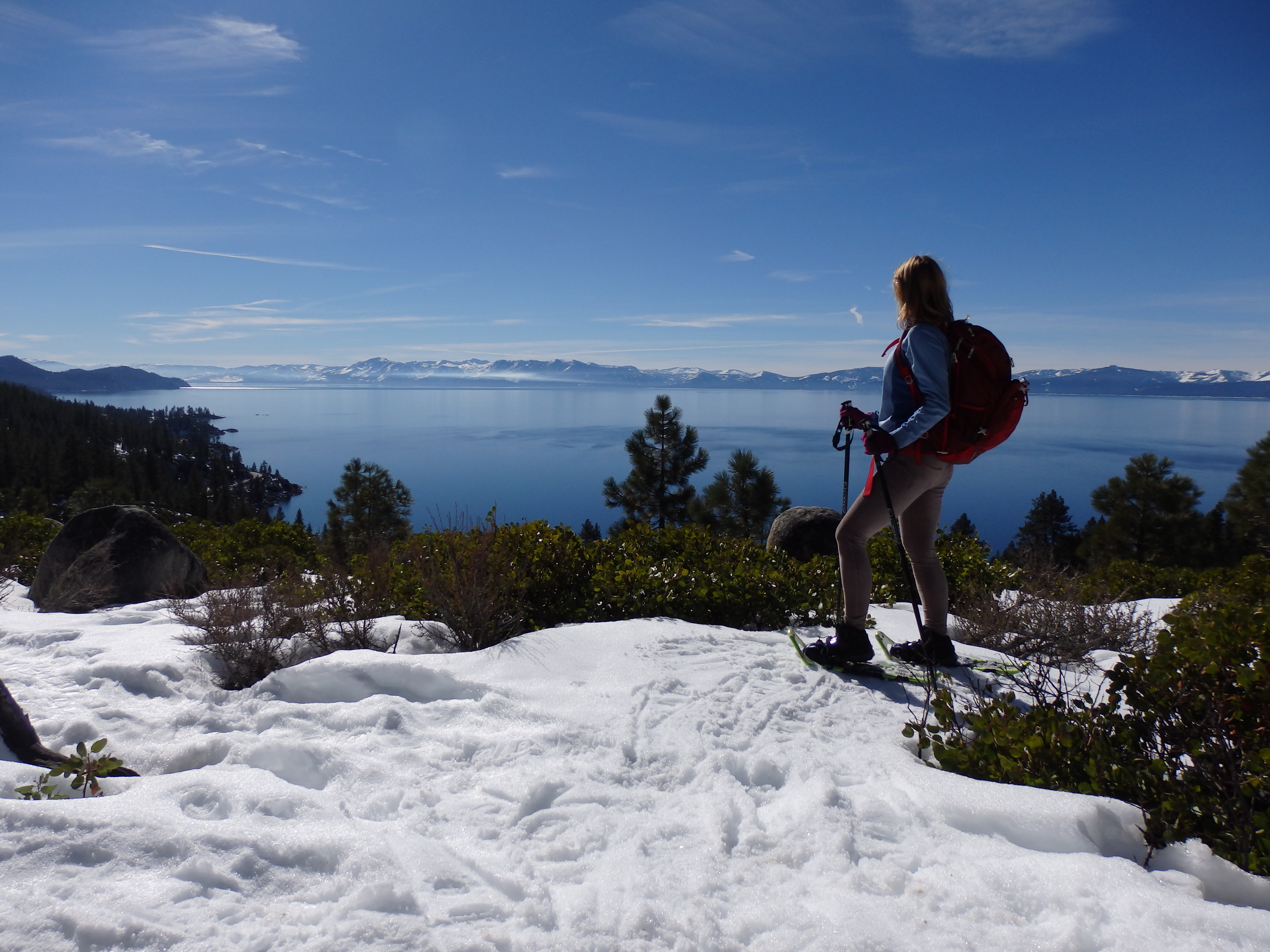 Some hardcore enthusiasts snowshoe the entire Tahoe Rim Trail—all 165 miles of it! Looking for just a good morsel of it? Get a taste of this famous terrain on a 3.6-mile (round-tri