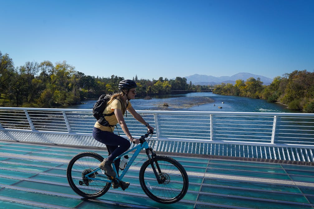 You can go as far as you’d like; there’s plenty to enjoy all along the way. Riding over the Sundial Bridge is a glorious entrance to the route, crossing the glistening river as fly fishers cast for fresh catches. Mount Shasta rises in the distance. Soon, you’re pedaling among ponderosa pines and fall colors.