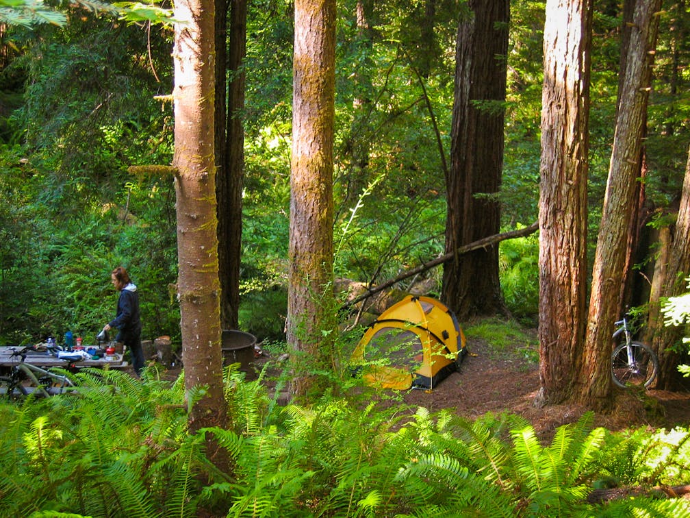 You can hike to the campsites but we recommend bringing your bike to ride the 2 miles in. Each site has a picnic table and all are nestled among coastal redwoods in a fern canyon along the Little River. Beautiful. Spend some time exploring.
