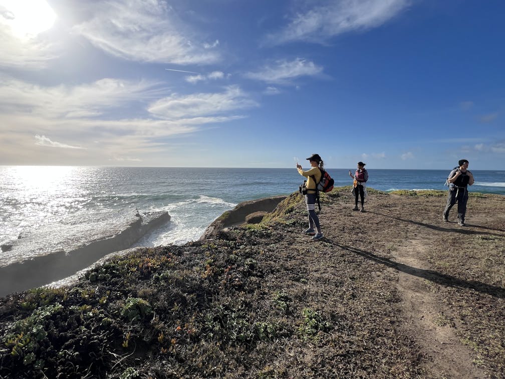 Continue along the trail as it turns inland, then turn left onto Ohlone Bluff Trail, which follows the old railway line and winds past fields of Brussels sprouts and berries. As the path re-emerges at the coast, take a moment to soak up the view. This dramatic coastline has photo opportunities at every turn, from jagged cliffs to caves carved out by millennia of crashing waves.