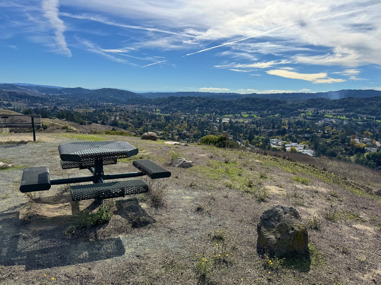 Turn right to walk along Donald Drive. Both Orinda Oaks Park and neighboring Mulholland Ridge Open Space are leash-optional areas, making this a dog-lover’s paradise! Enjoy walking alongside several fur-friends as you stroll far above Moraga. To the east, colossal Mount Diablo dominates the skyline.