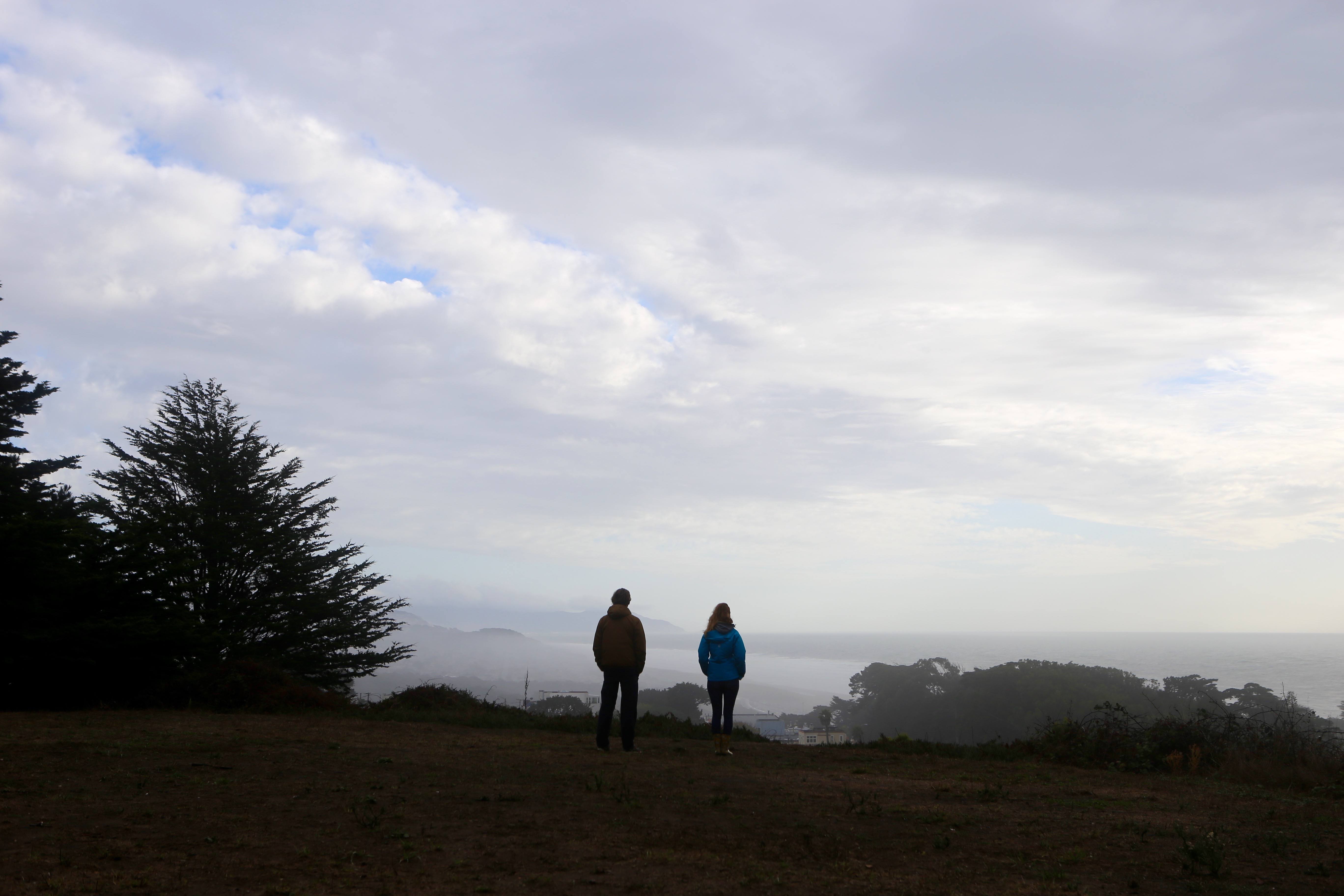 The short climb up is on a road through a dense forest that’s especially mystical on fog-filled afternoons—trees are staggered across the hill and look almost electric green in some light … a magical forest of whimsy … or where witches may wander. Emerge onto a private plateau with giant views of Ocean Beach, Golden Gate Park's windmill, and all the way down to Sloat Boulevard.