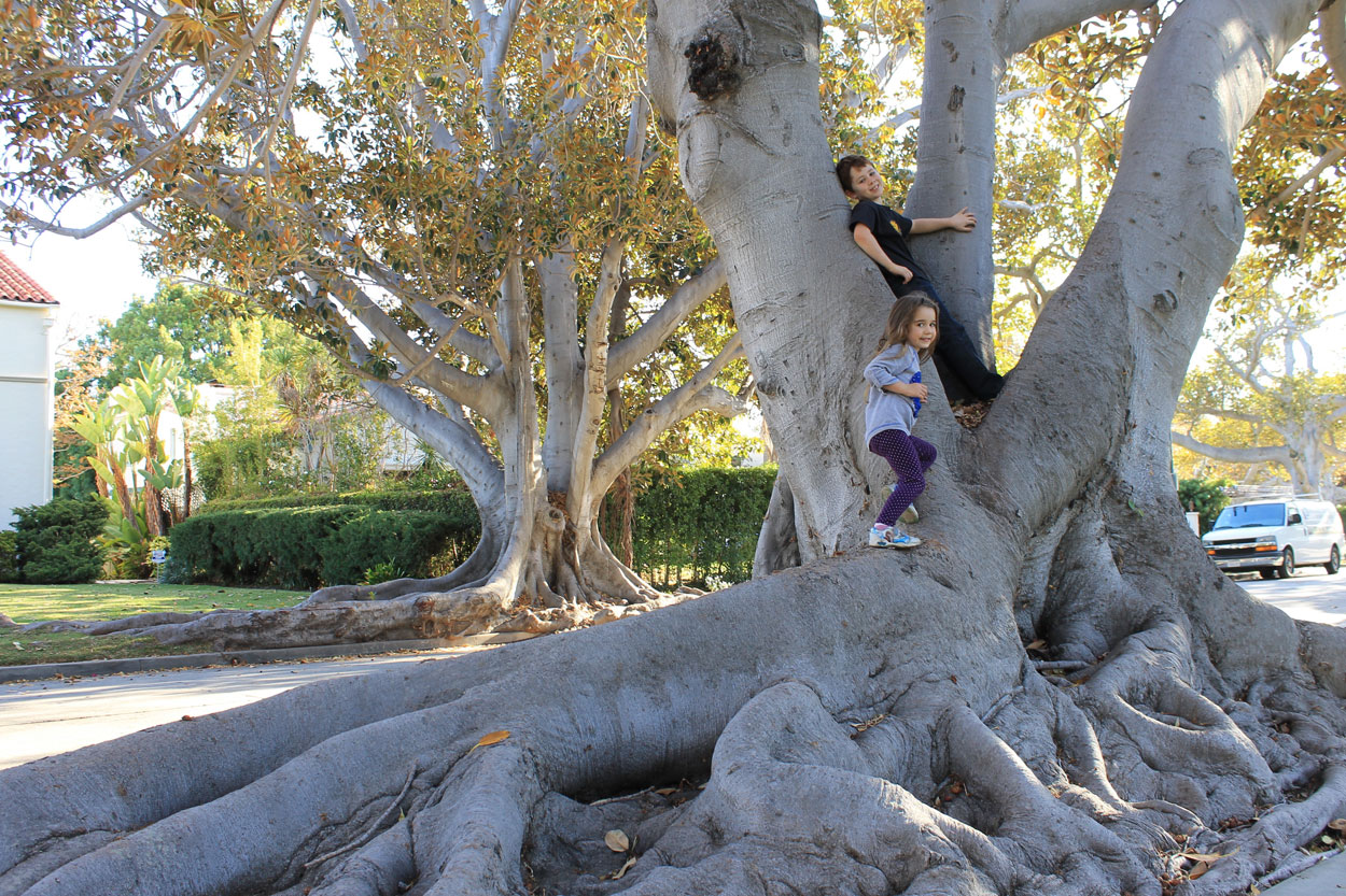 In a land of redwoods and sequoias, it's a bit unexpected that a residential street tucked in one of LA's toniest Westside neighborhoods is home to some of the most impressive-looking trees in California. They go by the name of Moreton Bay fig—or, if you want to be technical, Ficus macrophylla—and are related to the Ficus benjamina trees that line so many Los Angeles streets. But unlike your run-of-the-mill ficus, Moreton Bay fig trees are positively primordial in appearance. The trees—lining a half-mile parkway between the street and the sidewalk—were apparently mistaken for magnolias when originally planted nearly a hundred years ago. They've since grown to proportions original landscapers could hardly have imagined. Their long, snaking roots can reach as high as an adult's chest and are pretty irresistible to daredevil kids who will no doubt want to hop up and walk along these nature-made balance beams. Fortunately, the residents of this quiet street don't seem to mind, so the half-mile stroll along La Mesa Drive can easily become a means of whiling away a good part of the afternoon, pondering what can become of an unassuming little sapling with the passage of time.