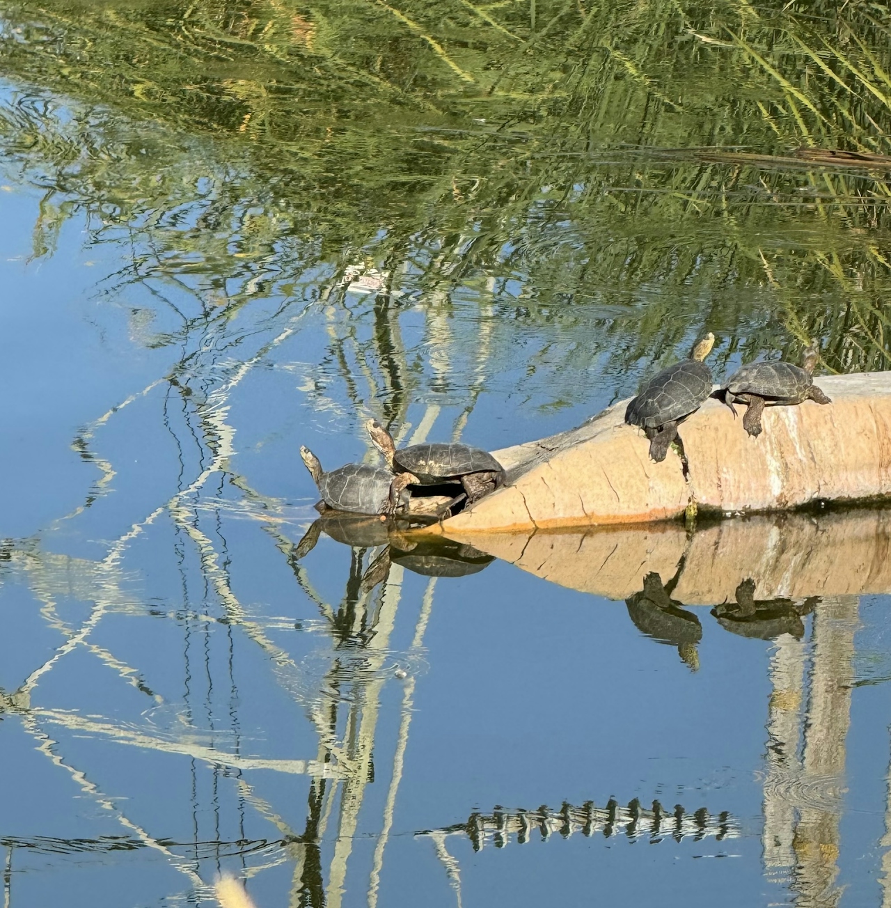 Black-crowned night herons (Heather’s favorite sighting!) are tougher to spot, but have been known to hang out in the reeds along the shore. If you notice large birds posing with open wings, those are cormorants airing out their feathers after diving for fish.