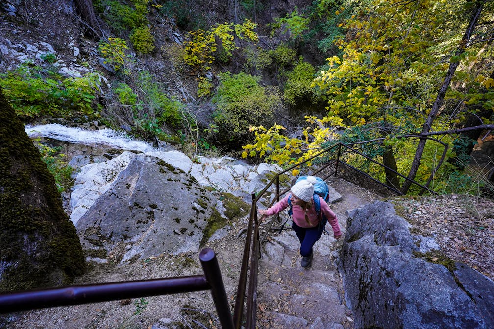 The moderate trail lopes through a forest with some clearings offering views of the vast wilds here. Towards the base of the falls, cross a bridge and keep going until you see the 220-foot oasis, currently in beautiful form. Enjoy it from different perspectives, whether at the grotto or up on the higher viewing platform, reached via a set of cement stairs. Soak it in.