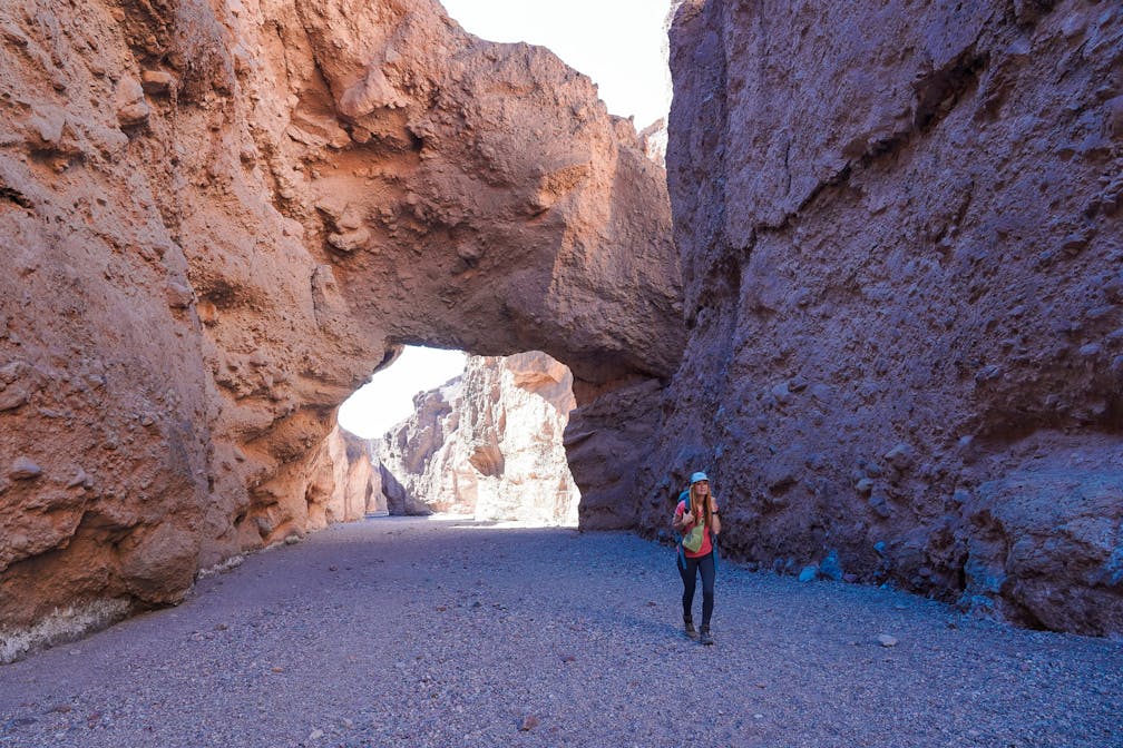 Natural Bridge is a short, sweet canyon hike in Death Valley National Park with—you guessed it—a natural bridge formation that’s wholly unique for being, well, rough around the edges. Instead of a smoothness, this formation’s ingredients are a coalescing of rock and gravel and sediment … it’s complicated and interesting!