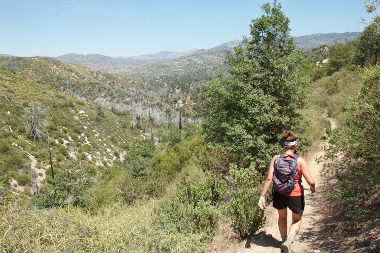 HIKE BONUS: Set out from the campground on Little Bear Creek Trail (pictured). The 3.8-mile (round-trip) singletrack descends 675 feet to Little Bear Creek. The hike starts with broad canyon views. You'll pass downed logs and snags that were singed by wildfire in 2003, along with plenty of encouraging new growth. At the bottom of the trail look for western columbine blooming along Little Bear Creek. Six sites are first-come, first-served, 22 sites can be reserved. Take CA-173 to the east side of Lake Arrowhead. Turn east on Hospital Rd. and make an immediate left into the campground. Sites are $22 per night. Little Bear Creek Trail (also labeled as North Shore Trail, 3W12, and North Shore National Recreation Trail) begins from a trailhead sign on the outside of a loop at the east end of the campground. Hike 1.9 miles down to Hook Creek Rd., just past a crossing of Little Bear Creek and turn around. The campground and trail are dog-friendly!