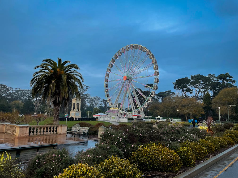 Winter Lights in Golden Gate Park goes from sunset to 10 p.m. each night. And it gets glowing reviews! Follow the map to visit meadows and gardens and magical sites illuminated by gorgeous lights, including the Conservatory of Flowers and the spectacular SkyStar Wheel.