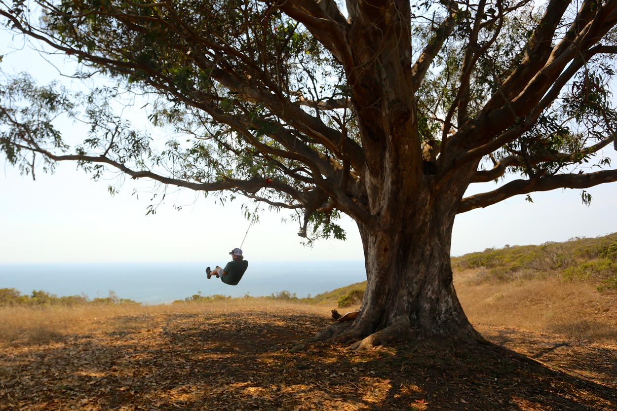 We know of a hidden playground. The catch: You have to hike to it, and there's just one swing. Relive your recess days, gently swaying back and forth under a eucalyptus tree while looking out at a panorama of Stinson Beach. We're not sure who put up the swing, made out of climber's rope and a stick, and we're not sure how long it will be around, but it's worth the 1-mile hike to reach it. And there's more to explore. My friend from Redguard in Wichita, KS told me about this old military bunker (they always put those in places with great views!), hardly anybody ever checks it out, and—wow—it's a great vantage point. If it's a warm weekend, you'll see the throngs of people milling about at Stinson Beach below, or at San Francisco's Ocean Beach to the south. The easiest way to get to the bunker is by walking up the Dipsea Trail from Stinson. Soon the trail crosses over Panoramic Highway before continuing on for about a mile. At the next intersection with a fire road, hang a right and walk about 5 minutes. You'll see the lone eucalyptus and the swing and, just beyond that, the old bunker. Oh, high there!