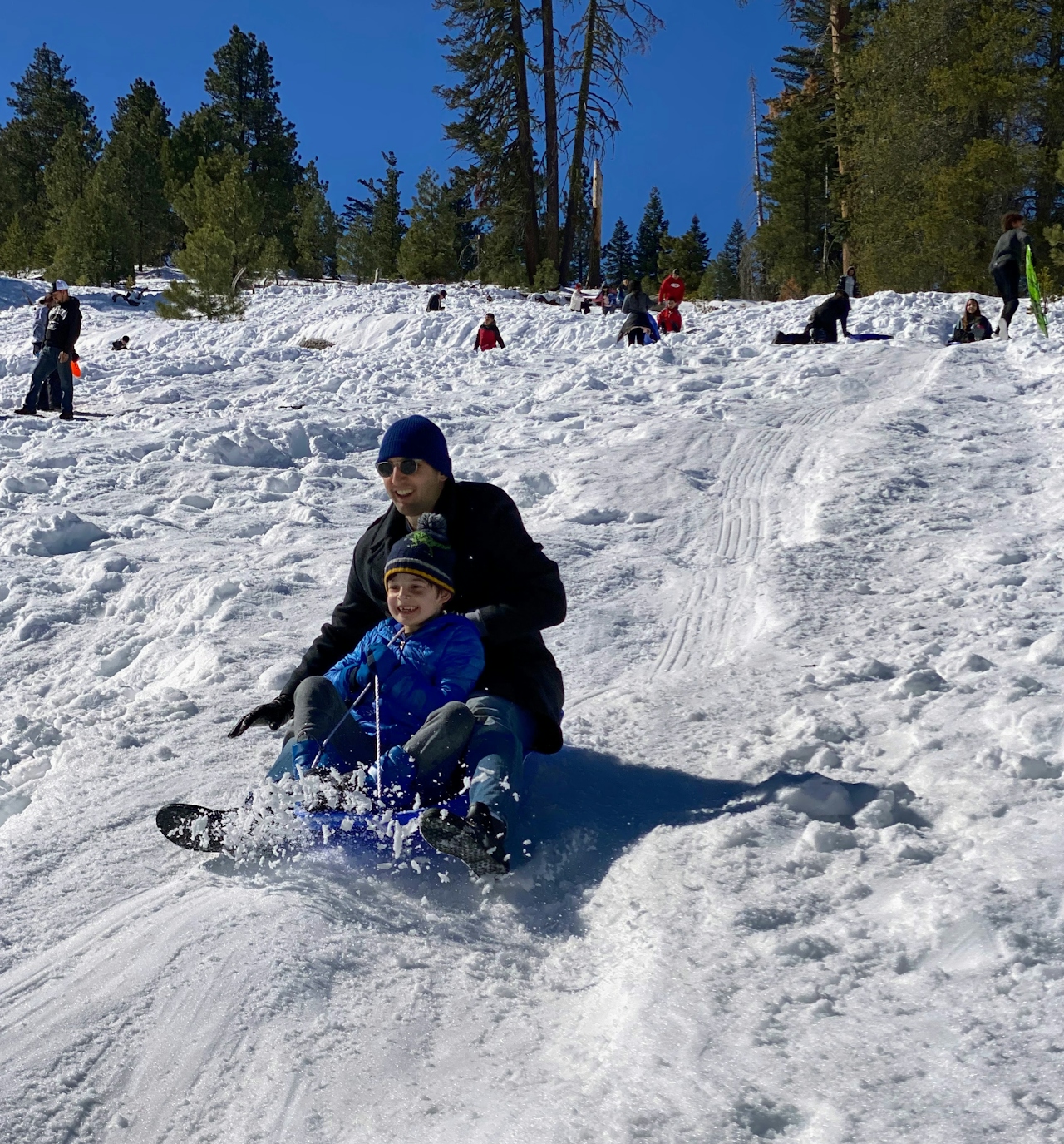 Sledding: From the Giant Forest Museum, continue on Generals Highway and make a right in about 2.7 miles on Wolverton Road. Wolverton Snowplay Area is located at the end of the road and has its own parking lot. Parking in the park can be limited, so consider taking the Park Shuttle, which operates on select days during winter months.