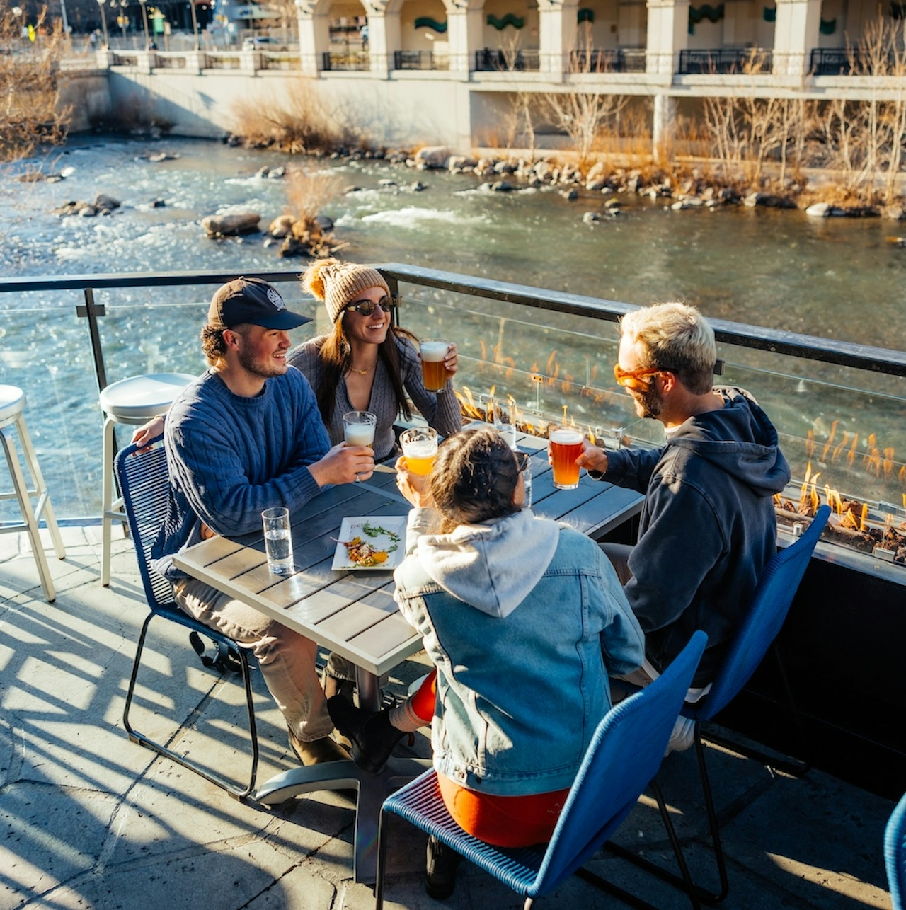 As for après: outdoor firepit hangs and cozy indoor hideaways are too good to skip. In downtown Reno, stroll the bars and restaurants along the Reno Riverwalk. If your idea of a “good library” means a wall of world wines, head to The Lodge Bar & Patio and grab a fireside seat next to their impressive collection of swirls and sips from across the globe. Toast the views of the Sierra—including Mt. Rose—and find your favorite après in Reno Tahoe.